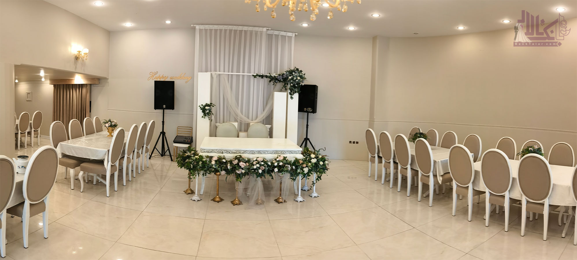 اتاق عقد زیبا: یکی از ویژگیهای برجسته این تالار، سالن عقد آن است که به عنوان یکی از زیباترین و لوکسترین اتاق عقدهای کرج شناخته میشود.
